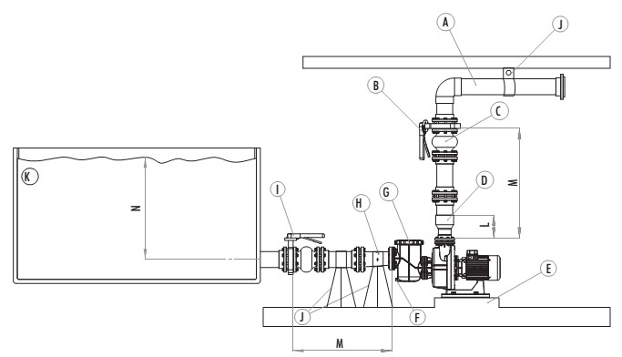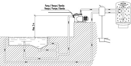 • prikaz mogućeg načina ugradnje crpke filtracije na razini iznad površine vode – samo kada ne postoji nikakva mogućnost da se ugradi na razini ispod površine vode