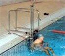 U tu svrhu postoje različita “dizala” i sustavi spuštanja teško pokretnih osoba u bazene, a mi smo odabrali i uvrstili u naš program jedan vrlo jednostavan model sa inkorporiranim ljestvama.