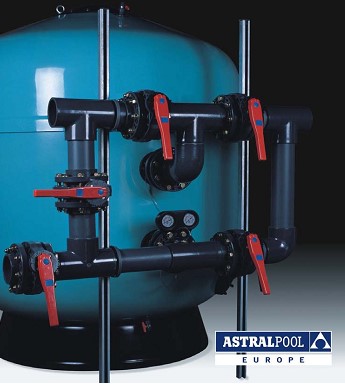 Za javne bazene se također najčešće koriste pješčani filteri većih dimenzija, ali oni umjesto 6-putnog ventila imaju baterije sastavljene od 4 ili 5 leptirastih zaklopki (ventila).