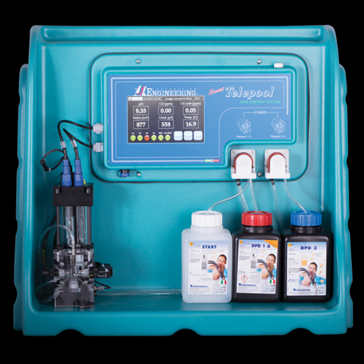 Isto tako upravlja i radom dozirne automatike Telepool, koja mjeri razinu klora koloriometrijskom metodom (DPD), koja je do danas najpouzdanija metoda mjerenja slobodnog klora u vodi.