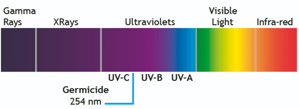 - 253.7 nanometra valne duljine – uništava viruse, alge, bakterije, pljesni, uključujući, legionelu i slične štetne mikroorganizme