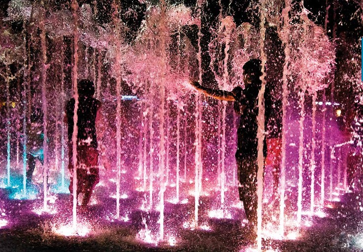 Međutim, razvojem tehnologije, a posebno u području rasvjete i upravljanja, fontane su od običnih vodenih skulptura postale prave vodene atrakcije i spektakularni vizualni doživljaji. Najbolji primjer za to su takozvani „vodeni vatrometi“ u sklopu kojih se događaju prave erupcije vodenih mlazova, harmonična gibanje vode u svim smjerovima, uz nagle i trenutne promjene u visinama vodenih skulptura – sve usklađeno sa svjetlosnim i zvučnim efektima.