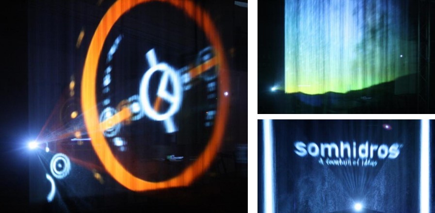 Otišlo se čak i korak dalje. Sofisticiranim upravljačkim sustavima i milimetarski precizno upravljivim mlaznicama i vodenim mlazevima, uz interakciju sa svjetlosnim efektima moguće je ispisivanje reklamnih poruka, kratkih tekstova, te prikaz projekcija na tako kreiranim vodenim ekranima – uz vrlo jednostavno upravljanje putem tableta.